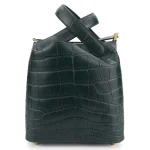 This Hermès Picotin 18 uses matte Vert Cypress alligator leather for deep green luxury. Gold hardware highlights its casual bucket shape. The 18cm size holds lipsticks, keys, and tiny essentials. Alligator leather stays scratch resistant and bold. Pair with earth tones or neutrals for organic flair. Perfect for dinners or autumn outings. Nature inspired elegance.