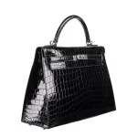 1:1 Hermès Replica – Kelly 32 Black Shiny Niloticus Palladium HW