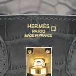 1:1 Hermès Replica – Birkin 20 Sellier Black Matte Alligator Gold HW