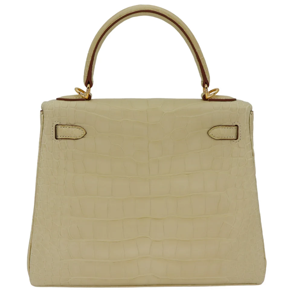 1:1 Hermès Replica – Kelly 25 Retourne Vanille Matte Alligator Gold HW