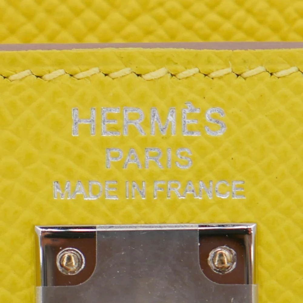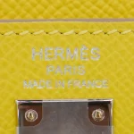 This Hermès style Kelly 25 features Lime Epsom leather in zesty green. Palladium hardware cools the vibrant tone. The 25cm sellier design holds tablets and essentials securely. Scratch resistant leather stays bright for seasons. Pair with white or neutral outfits for fresh contrast. Perfect for summer events or tropical vacations. Bold color meets everyday practicality.