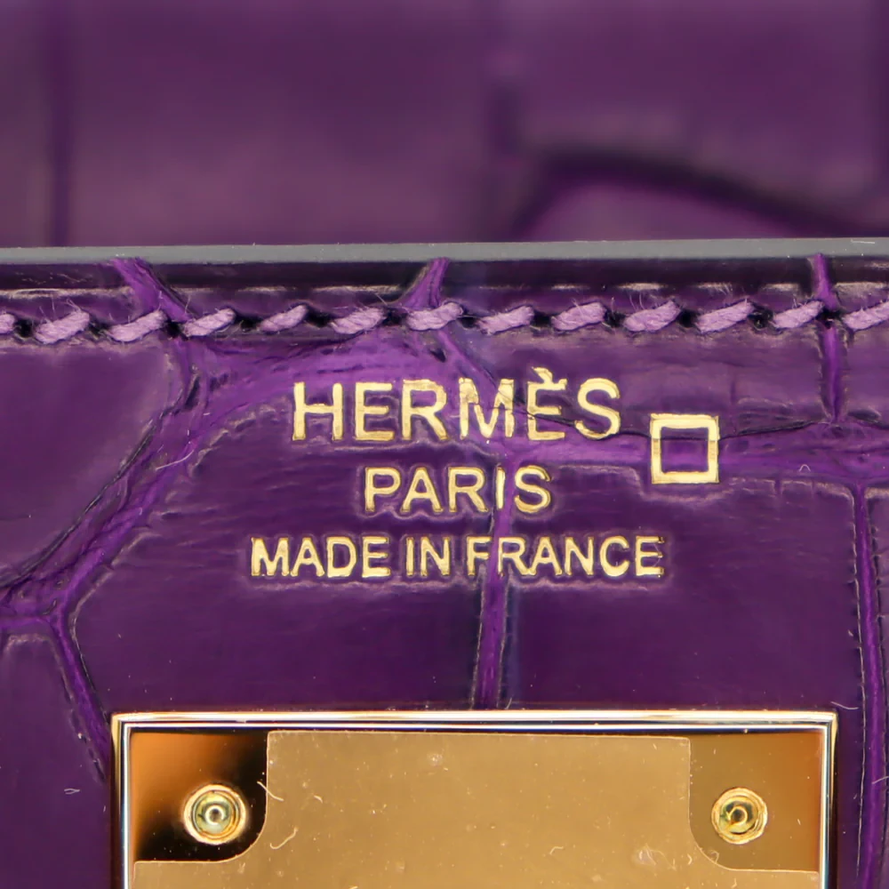 1:1 Hermès Replica – Kelly 28 Retourne Amethyst Matte Alligator Gold HW