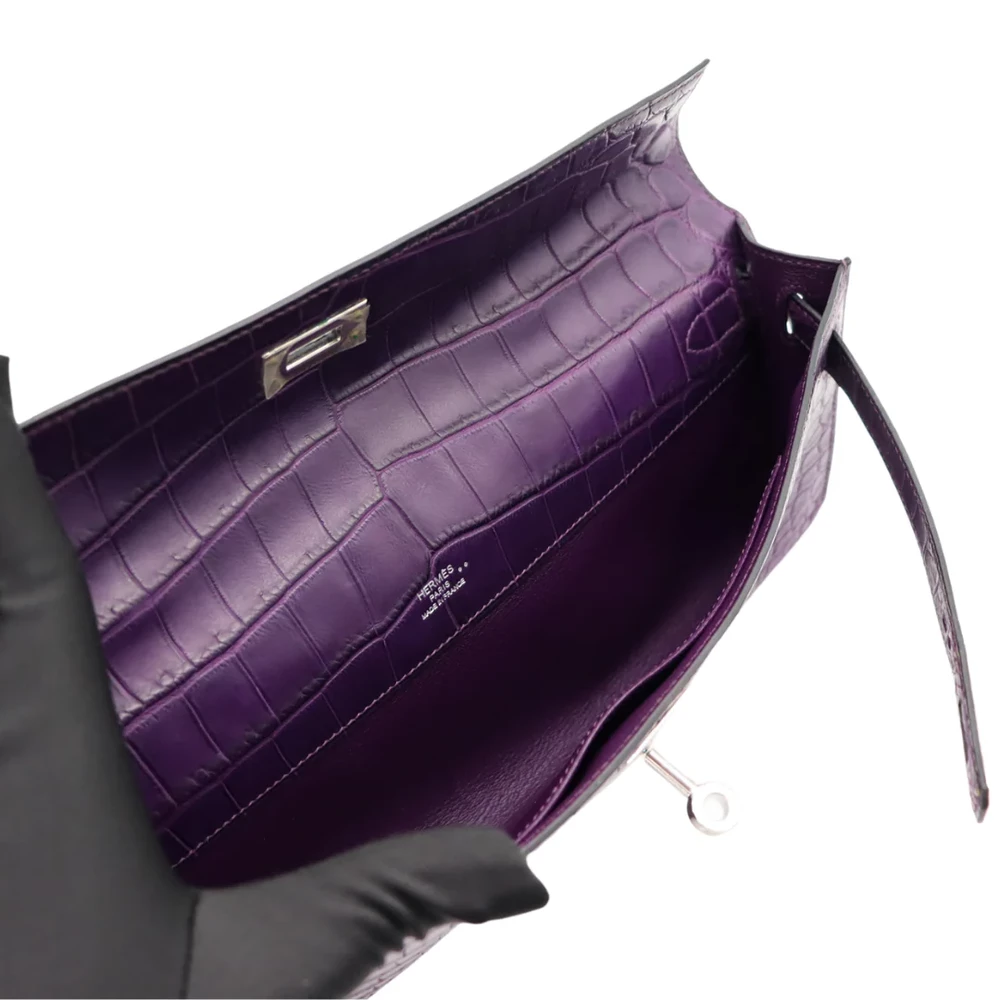 1:1 Hermès Replica – Kelly Cut Amethyst Matte Alligator Palladium HW
