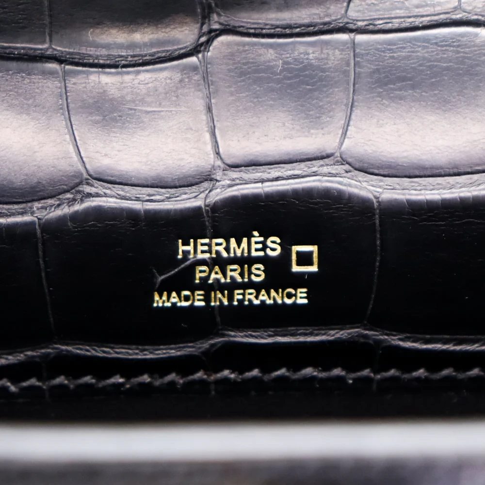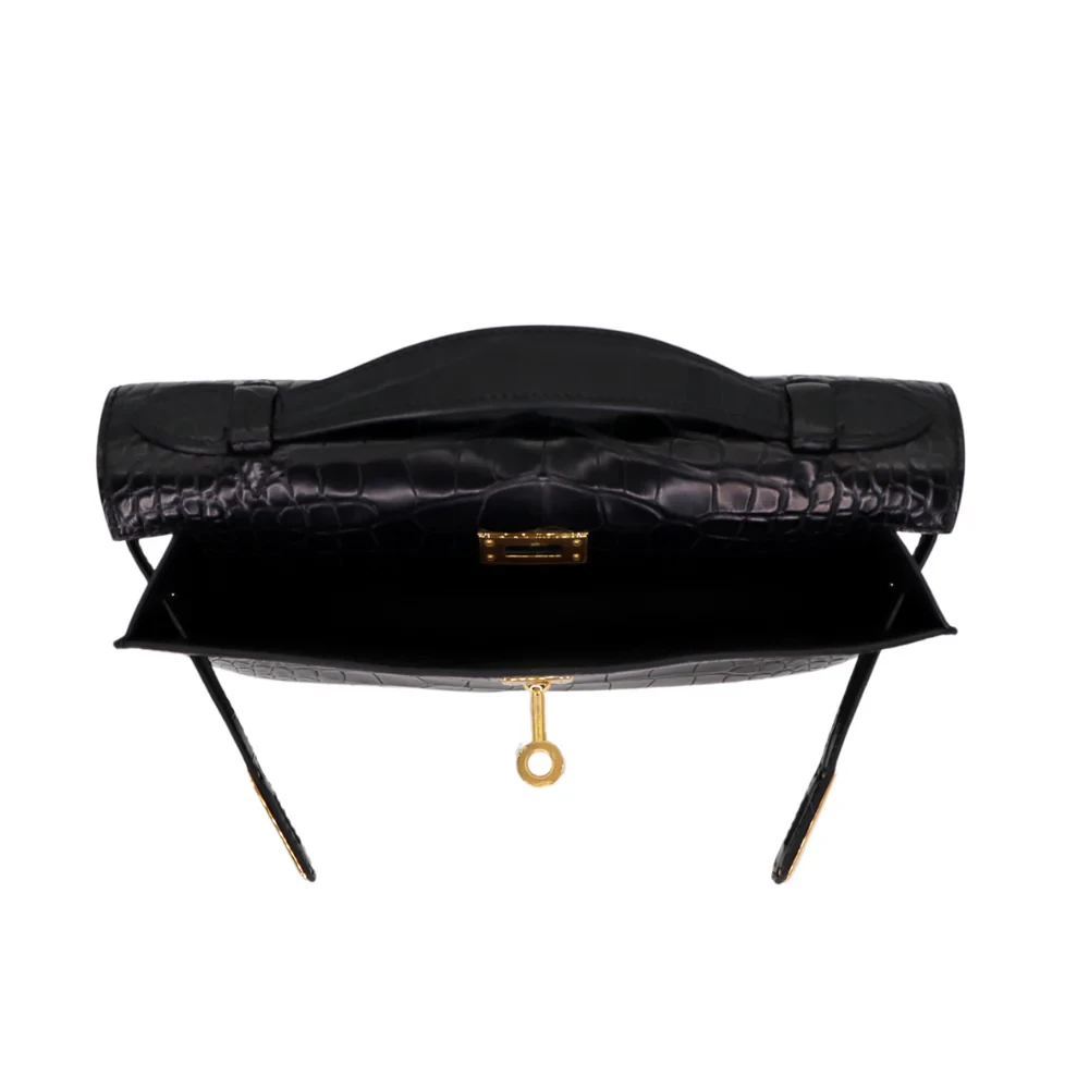 1:1 Hermès Replica – Kelly Pochette Black Matte Alligator Gold HW