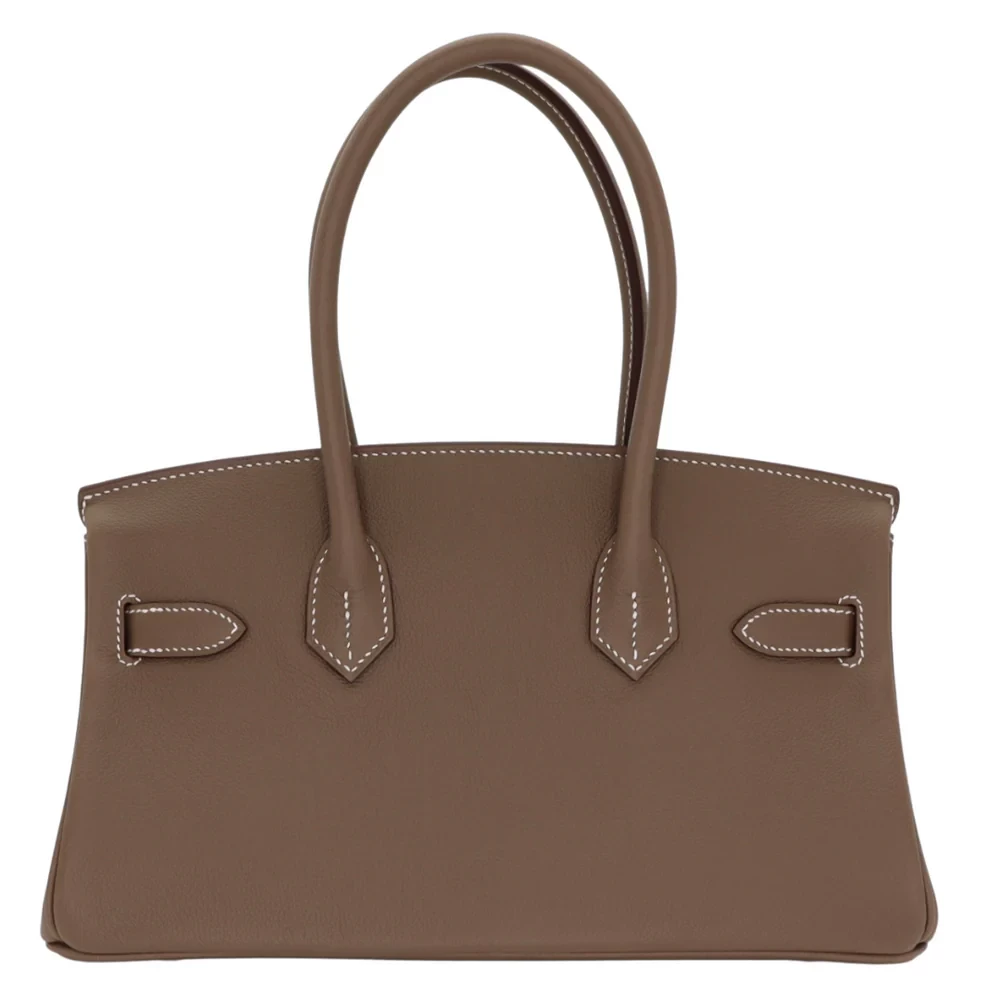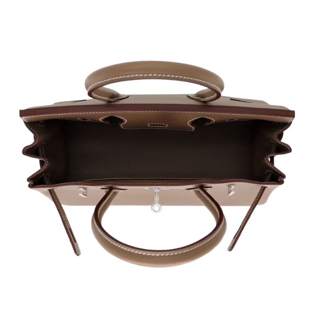 This Hermès style Birkin 29 shoulder bag comes in soft grey Etoupe leather. The silver palladium hardware keeps the look calm and modern. The 29cm size fits your essentials and a small water bottle. The adjustable strap makes it comfortable for all day wear. It’s perfect for errands, work, or weekend adventures. A neutral bag that goes with absolutely everything.