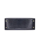 This Hermès inspired Kelly 25 Sellier features Bleu Indigo Shiny Lizard leather for exotic, jewel toned texture. Gold hardware highlights the crisp Sellier stitching and compact frame. The 25cm size carries phones, keys, and lipsticks. Lizard leather is durable and luxuriously glossy. Pair with navy suits or gold jewelry for regal contrast. Perfect for dinners, events, or collector’s pieces. Opulent rarity, artisan crafted.