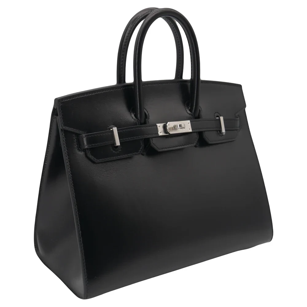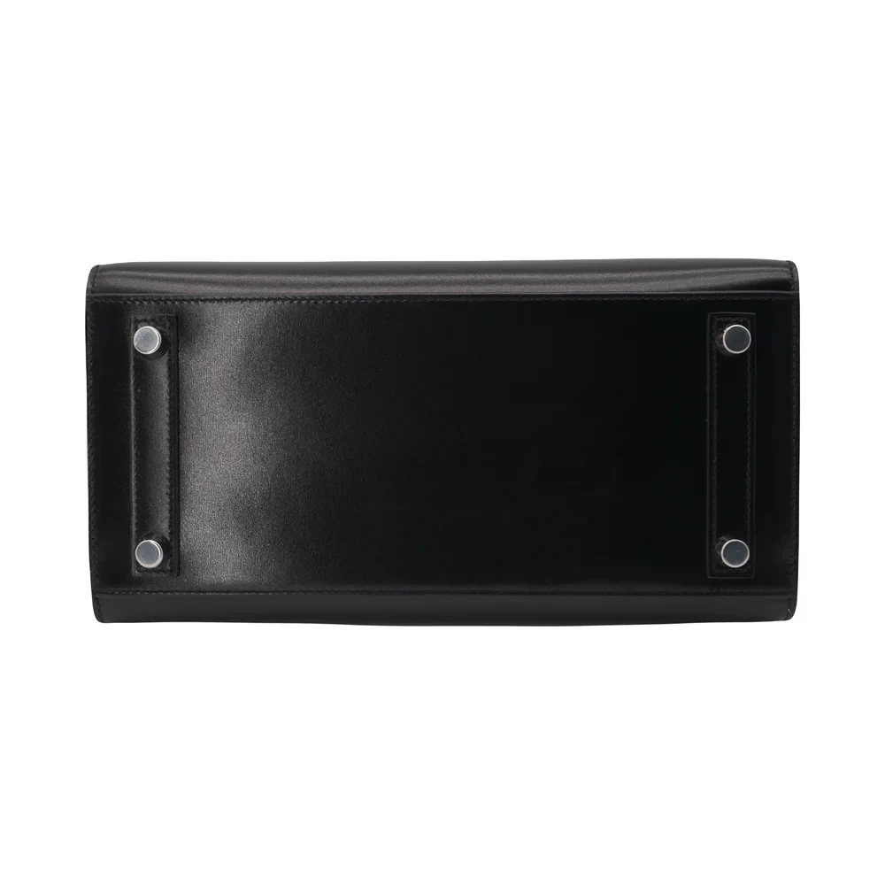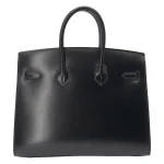 This Hermès inspired Birkin 25 Sellier features Black Box Calf leather for sharp, polished elegance. Palladium hardware complements the structured 25cm design. Glossy Box Calf resists scratches and stays pristine. Compact yet fits essentials like cards and keys. Pair with suits or dresses for office ready chic. Minimalist luxury perfected.