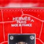 This Hermès inspired 40cm Birkin dazzles in bright red crocodile leather. The silver palladium hardware keeps it modern. The oversized design fits laptops, books, or travel gear. The glossy finish turns heads everywhere. Pair it with neutrals for a pop of drama. A statement piece for fearless fashion lovers.