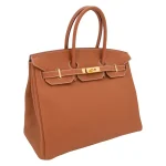 This Hermès Replica Birkin 35 features warm Gold Togo leather with natural grain. Matching gold hardware creates harmonious elegance. The 35cm size fits work files and travel needs. Lightweight yet surprisingly spacious interior. Pairs beautifully with earth tone outfits. Your perfect autumn to winter transition piece. Rich luxury for every season.