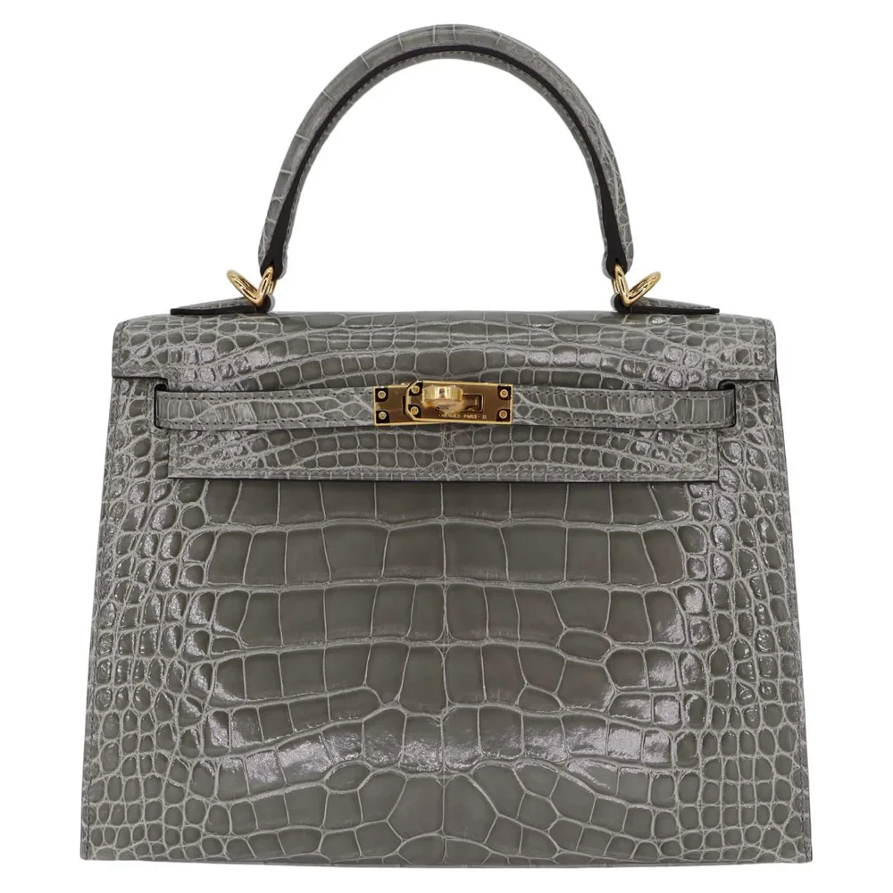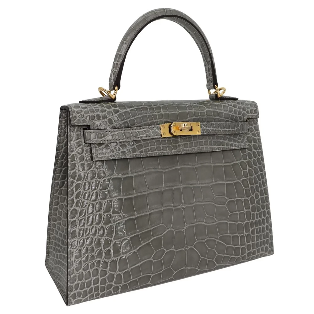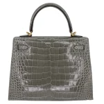 Best Replica Hermes – Kelly 25 Sellier Gris Cement Shiny Alligator Gold HW