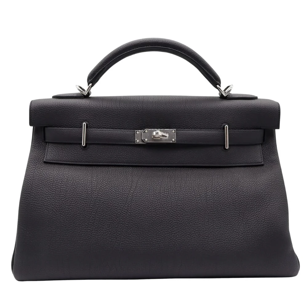 This Hermès style Kelly Maxi uses Black Togo leather. Palladium hardware adds modern edge. The 42cm size fits laptops and more. Durable grain hides daily wear. Perfect for corporate warriors. Commanding luxury for leaders.