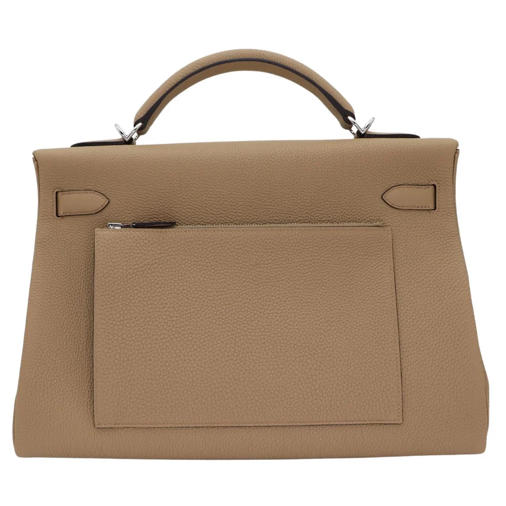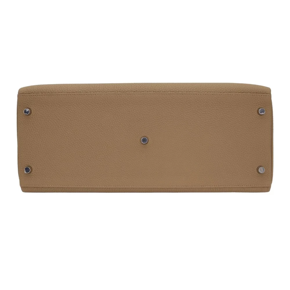 This Hermès style Kelly Maxi features Beige Marfa Togo. Palladium hardware keeps it modern. The 42cm size holds laptops easily. Lightweight leather reduces shoulder strain. Perfect for executive travel. Spacious luxury for ambitious women.