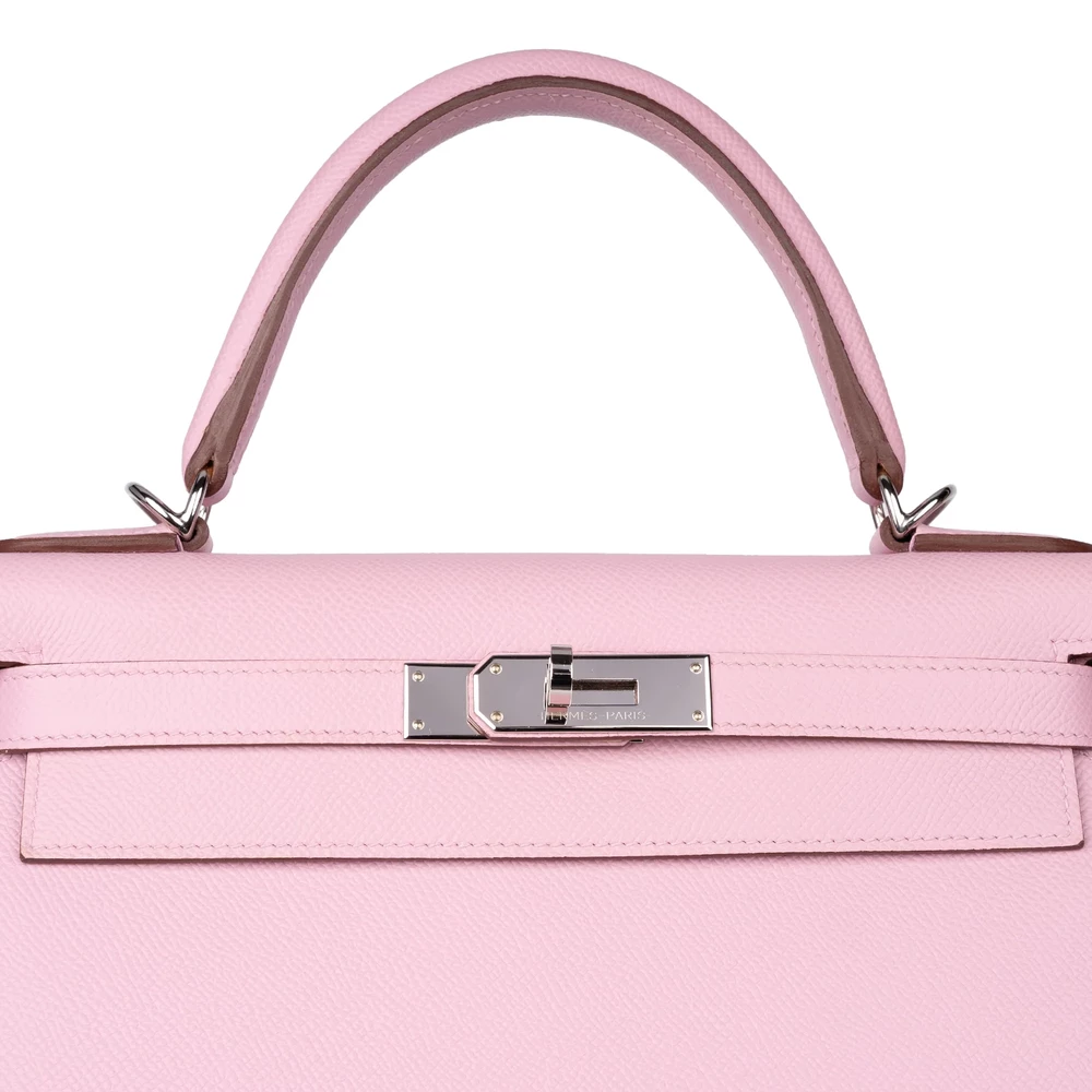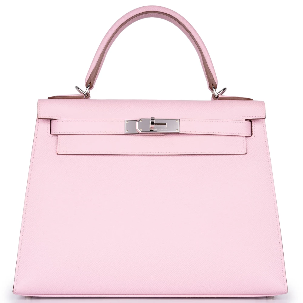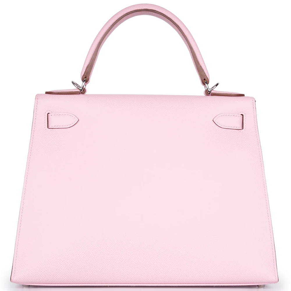 This Hermès Kelly 28 uses Mauve Sylvestre (dusty mauve) leather for romantic softness. Palladium hardware accents the structured Sellier lines. The 28cm size fits laptops, planners, and essentials. Leather resists scratches and stays polished. Pair with pastels or neutrals for gentle elegance. Ideal for spring events or daytime refinement. Delicate and dreamy.