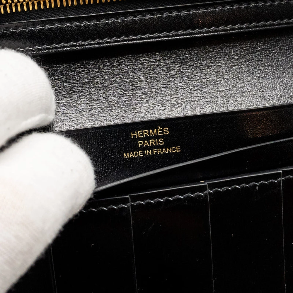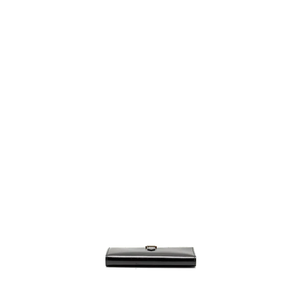 This Hermès Bearn Wallet in Box leather in Black with Gold Hardware stamp B offers a classic and sophisticated design. The rich Black color, combined with luxurious Box leather, creates a timeless wallet, enhanced by the gold hardware.