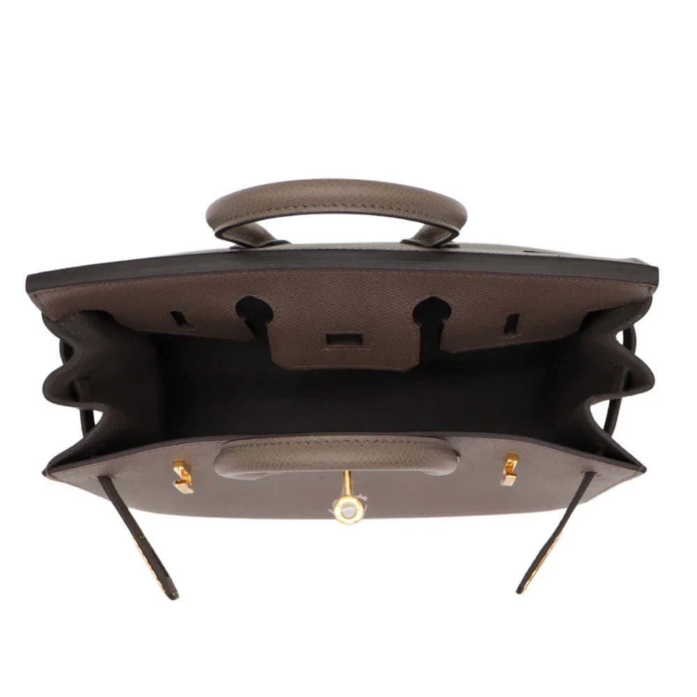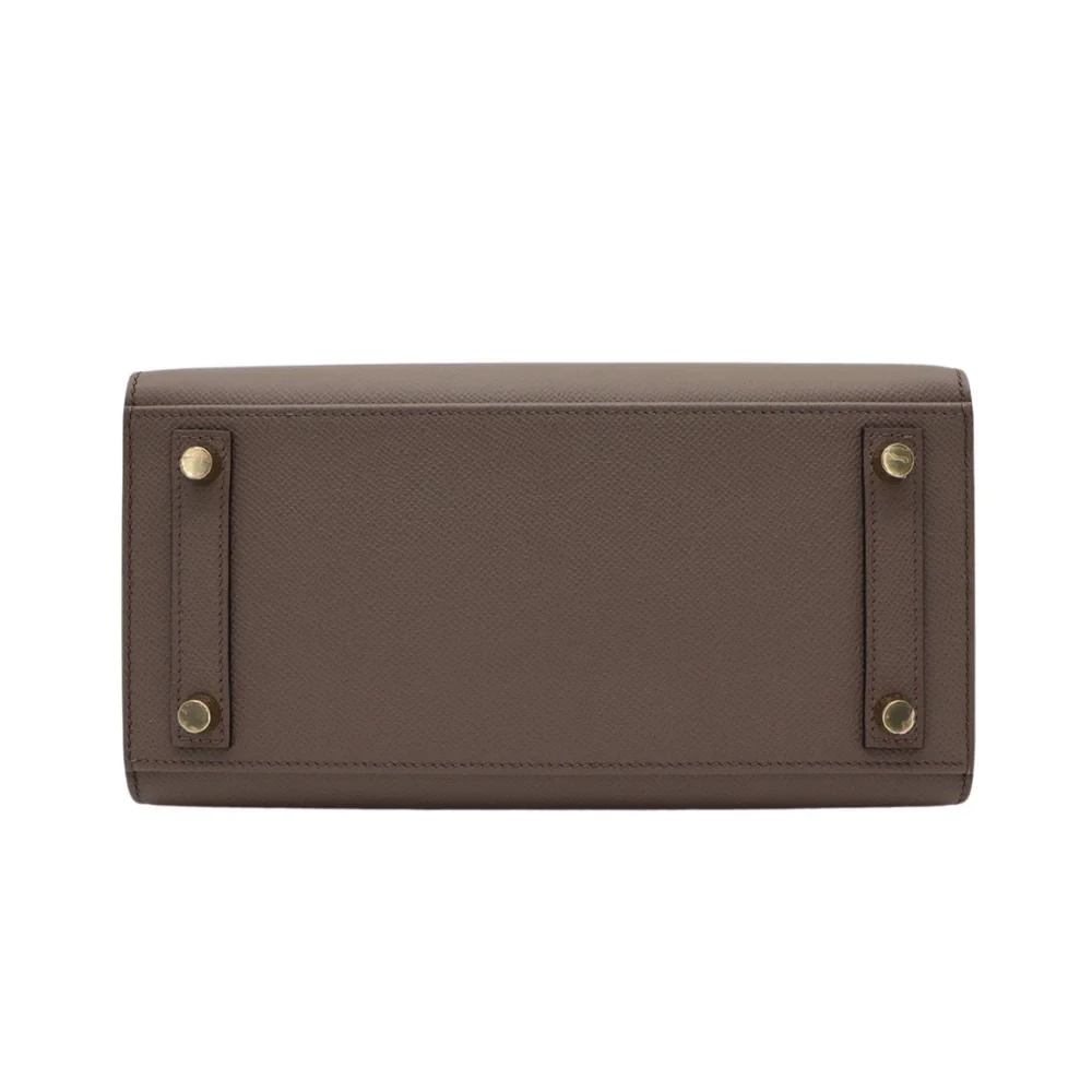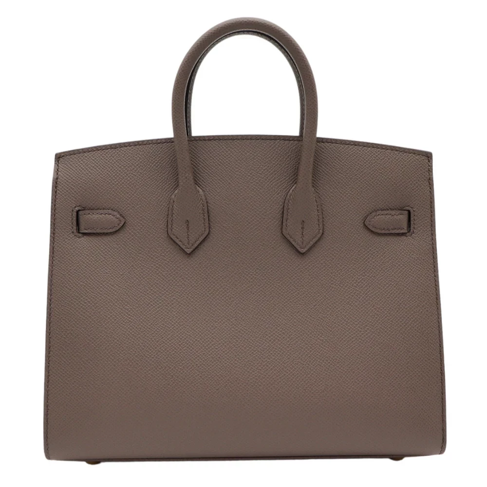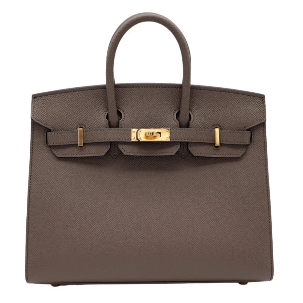 This Hermès style Birkin 25 in grey Epsom leather is sleek and professional. The gold hardware adds warmth to the cool tone. The Sellier design keeps it structured and polished. The 25cm size is perfect for work or evenings out. The neutral color pairs with everything in your closet. A minimalist’s dream for understated luxury.