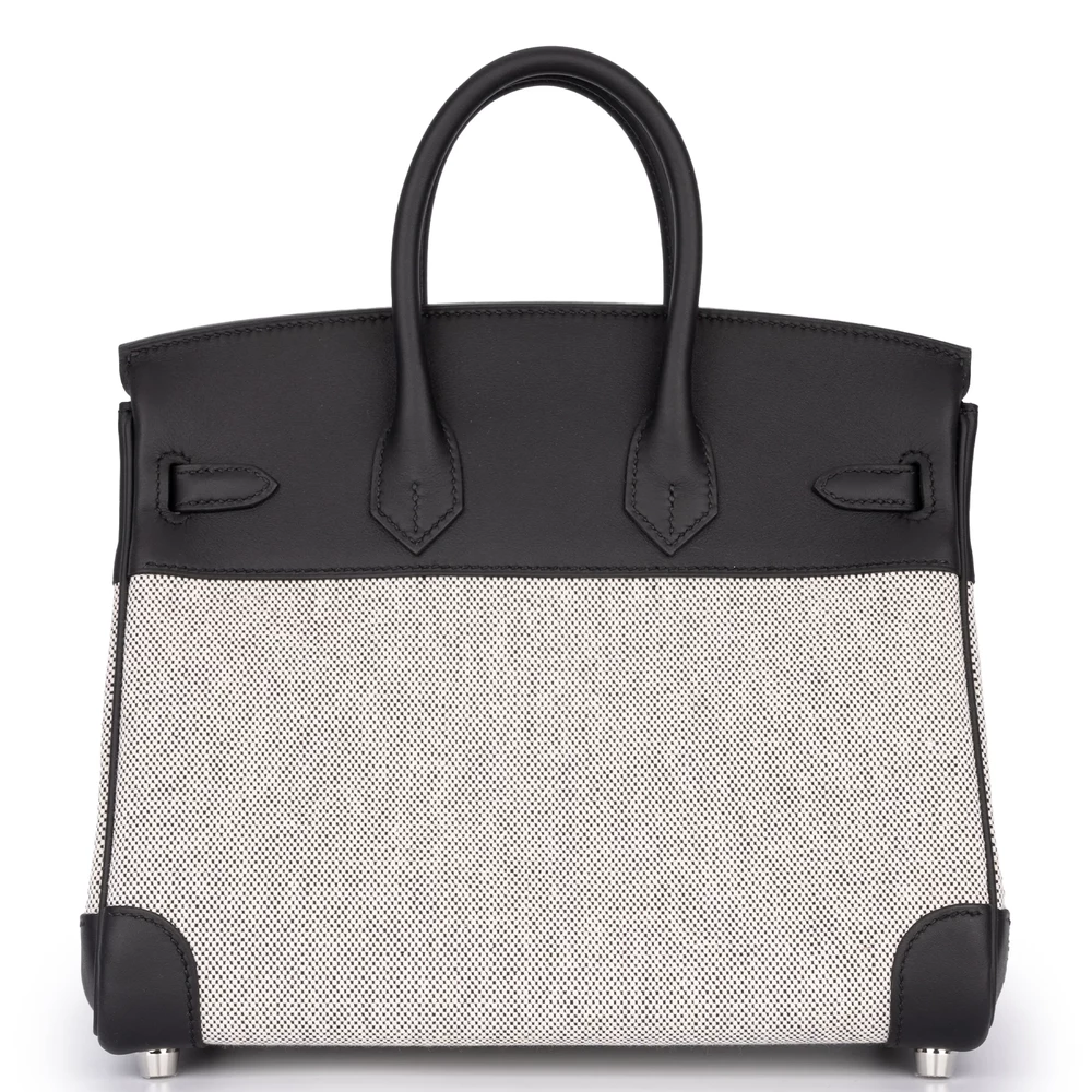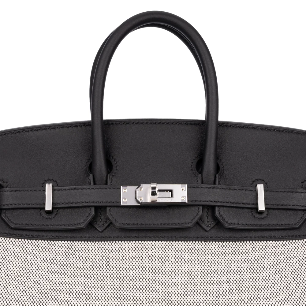 Hermès Birkin 25 Veau Toile Swift Ecru Noir Palladium HW – 1:1 Replica