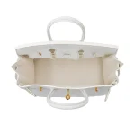 This Hermès Replica Birkin 25 features pristine White Clemence leather. Gold hardware adds warm accents. The 25cm size stays fresh and clean. Soft leather feels luxurious. Perfect with summer dresses. Your perfect wedding guest companion. Pure luxury for special occasions.
