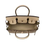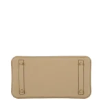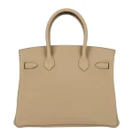 This Hermès inspired Birkin 30 features Trench Togo leather, a warm beige neutral tone. Gold hardware elevates the 30cm design with timeless elegance. Soft Togo leather resists scratches and ages gracefully. Roomy enough for work gear or travel essentials. Pair with earthy tones or jewel colors. Lightweight and versatile for daily use. Effortless sophistication redefined.