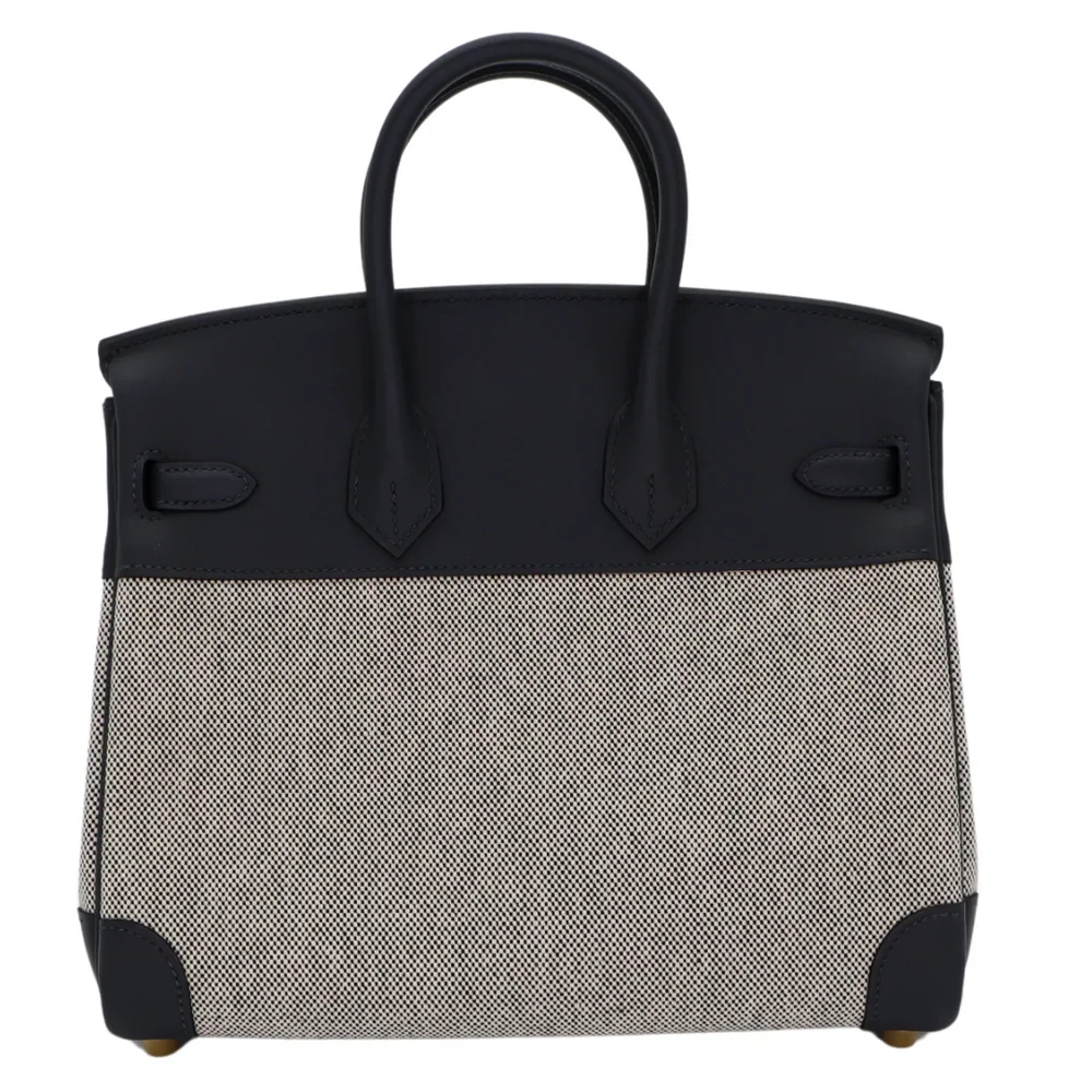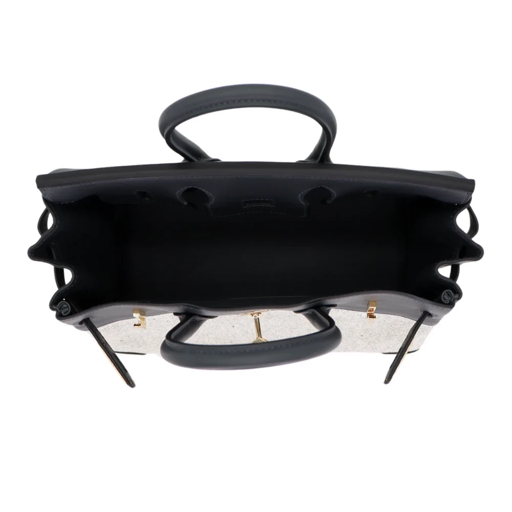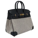 This Hermès like Birkin 25 uses grey toile fabric and soft Swift leather. The permabrass hardware adds a warm, rustic charm. The 25cm size is roomy enough for daily essentials. The neutral grey color matches any outfit. Perfect for spring picnics or casual brunch dates. Lightweight and easy to carry. A laid back bag with a touch of elegance.