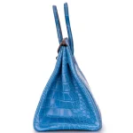 This Hermès Birkin 35 features matte blue alligator leather for cool, beachy vibes. Palladium hardware adds sleek contrast. The 35cm size holds towels, sunscreen, or vacation gear. Alligator leather stays tough and water resistant. Pair with white or denim for summer style. Ideal for holidays or yacht trips. Fresh and luxurious.