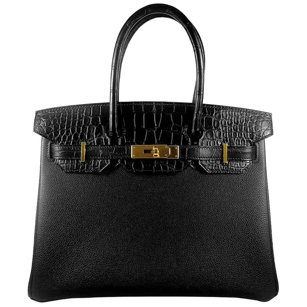 Hermès Birkin 30 Touch Black Togo/Niloticus Crocodile Gold HW – High-End Inspired