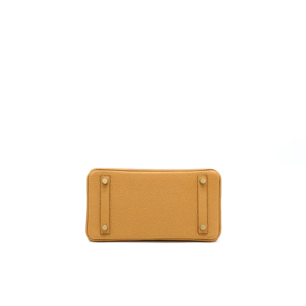This Hermès inspired Birkin 25 Touch blends Caramel and Tabac Camel Togo leather with Niloticus crocodile for warm, earthy contrast. Gold hardware accents the compact, structured silhouette. The 25cm size fits phones, wallets, and lipsticks. Togo and croc resist wear with quiet opulence. Style with neutrals or metallics for autumnal flair. Perfect for cozy days or luxury errands. Rustic sophistication.