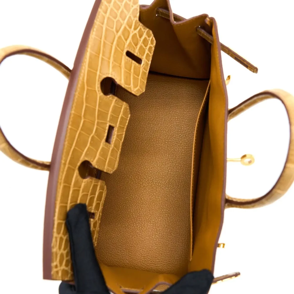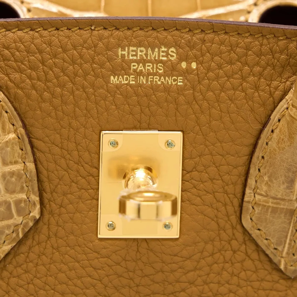 Hermès Birkin 25 Touch Caramel/Tabac Camel Togo/Niloticus Crocodile Gold HW – Premium Replica