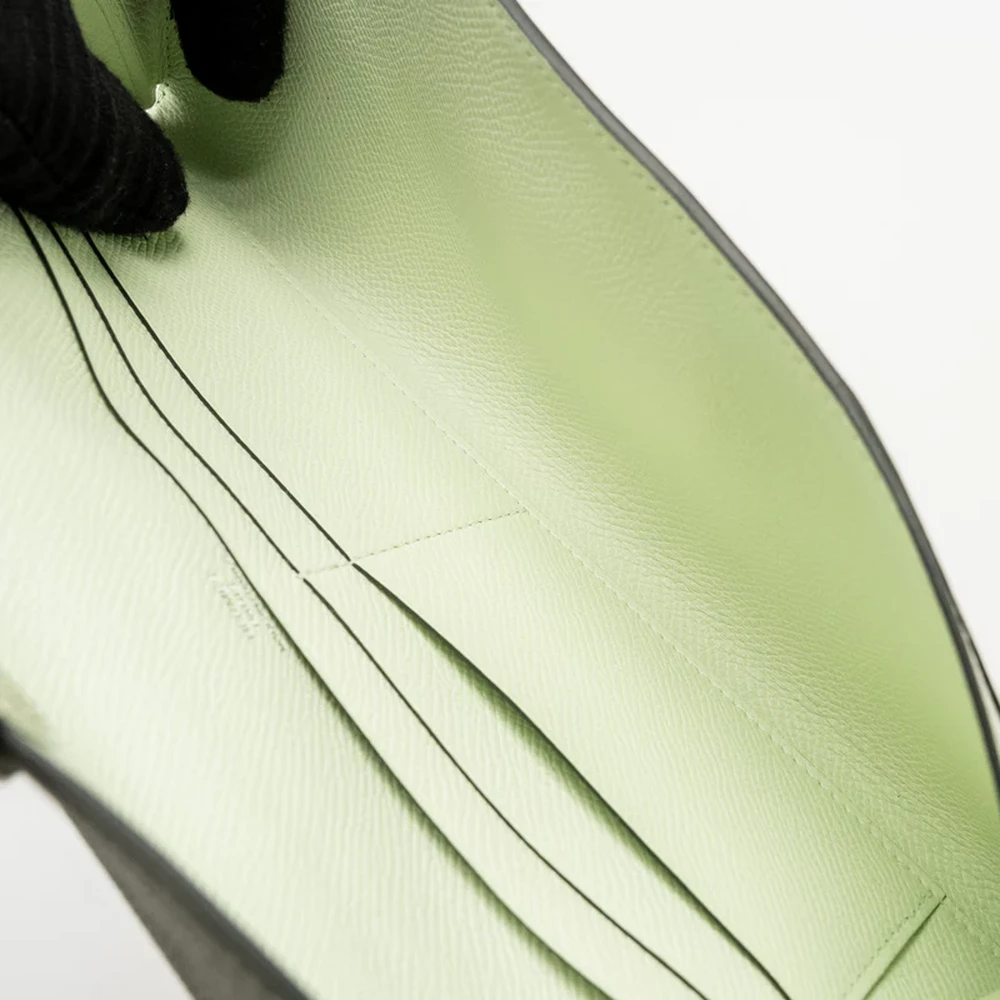 This Hermès Chaine d’Ancre To Go Wallet in Epsom leather in Vert Fizz with Silver Hardware stamp B is a sleek and modern wallet design. The vibrant Vert Fizz color paired with the structured Epsom leather creates a bold yet sophisticated aesthetic. Silver hardware completes the design, offering a refined, practical piece.