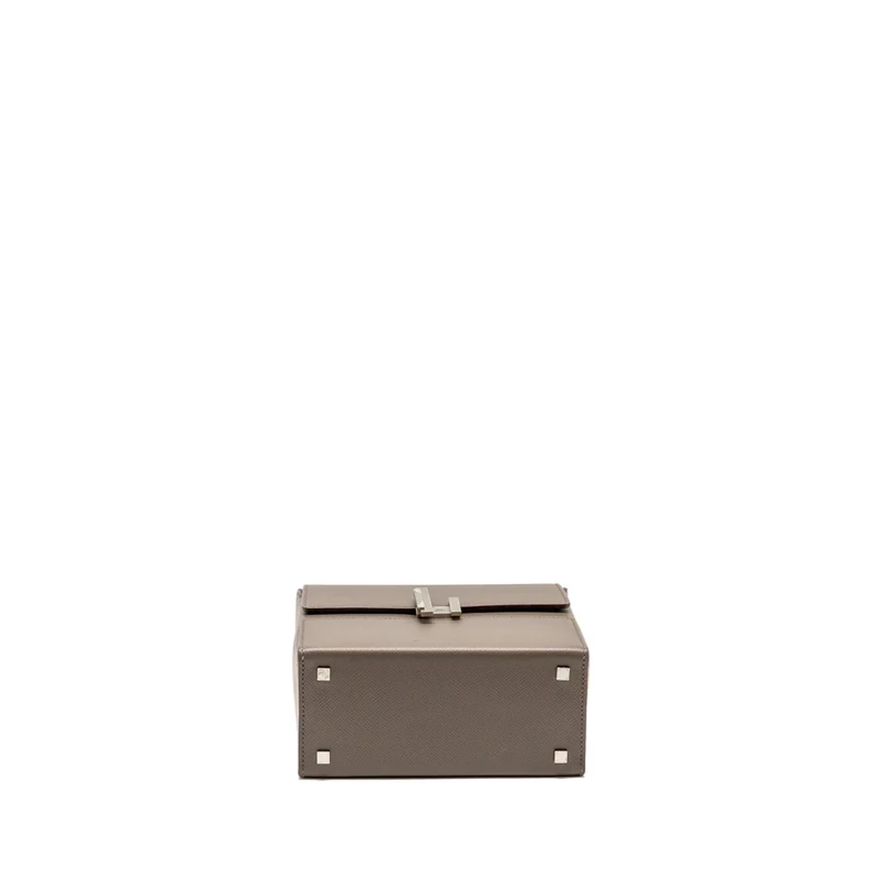 This Hermès Cinhetic Box Bag in Epsom leather in Gris Etain with Silver Hardware stamp D offers a structured, modern design. The rich Gris Etain color is complemented by the sleek Epsom leather, providing a sophisticated, minimalist look. Silver hardware adds a refined touch, making it a perfect choice for any occasion.