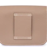 This Hermès Constance Slim features Epsom Etoupe (grey) leather for compact minimalism. Gold hardware highlights the slim, modern design. The small size fits cards, cash, and keys. Epsom leather stays scratch resistant and polished. Style with tailored outfits or casual jeans. Built for everyday polish or special occasions. Effortless versatility.