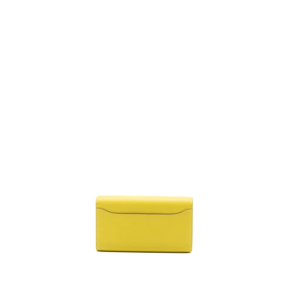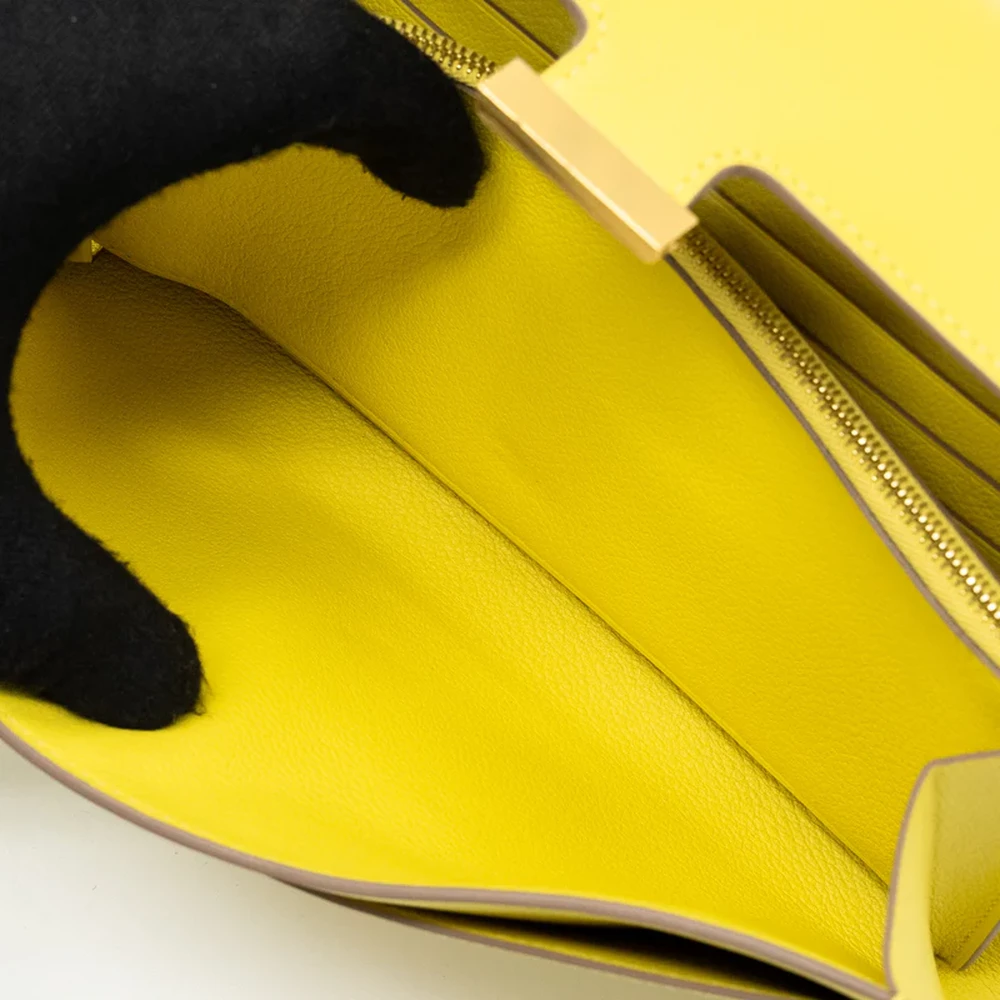 This Hermès Constance to Go in Evercolor leather in Lime with Gold Hardware stamp Z is a bold and vibrant design. The fresh lime hue, combined with the soft Evercolor leather, makes this bag stand out with its bright and lively color. The gold hardware complements the bold design, adding an element of sophistication.