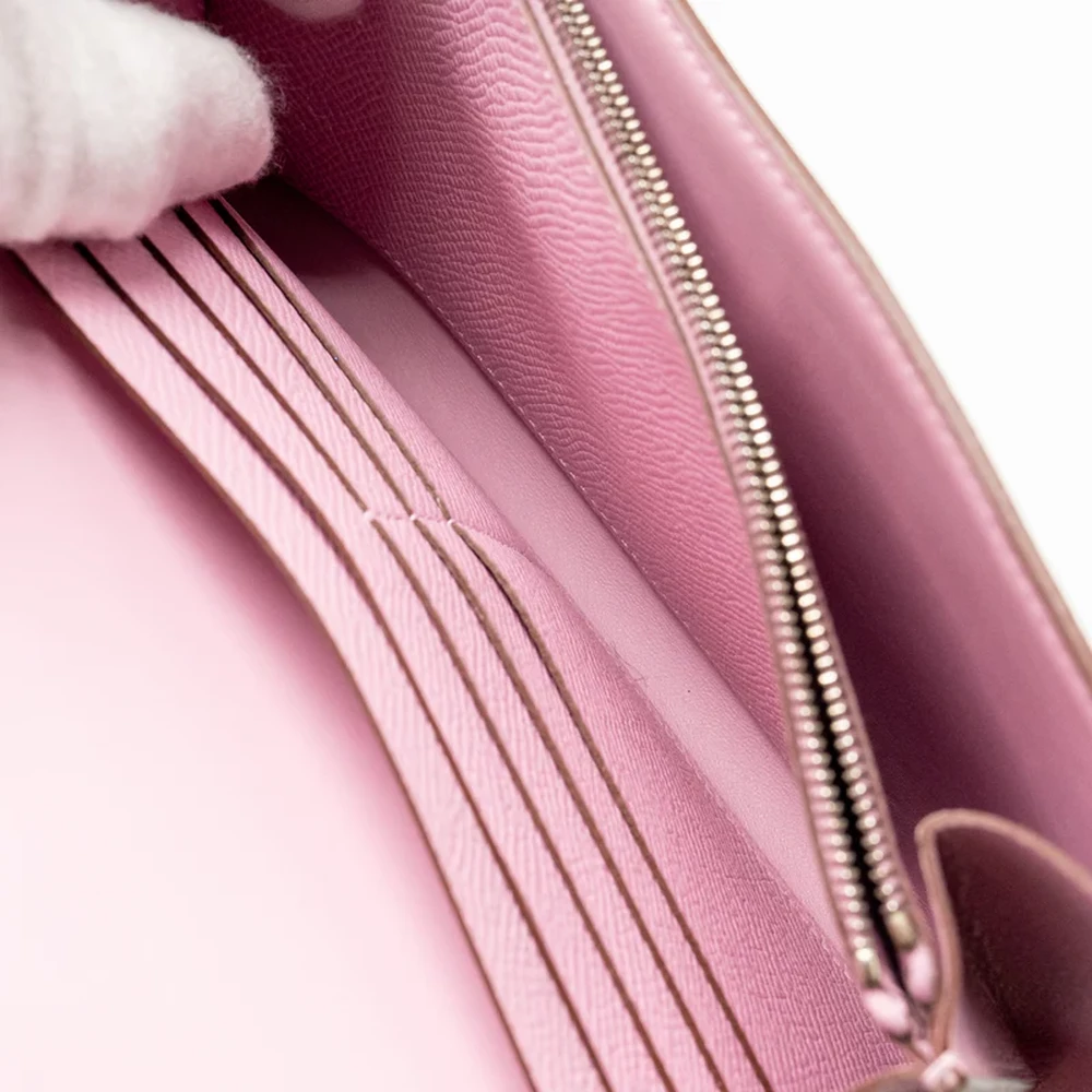 This Hermès Constance to Go in Epsom leather in Mauve Sylvestre with Silver Hardware stamp U is a compact and chic piece. The soft Mauve Sylvestre color, combined with the textured Epsom leather, offers a subtle elegance, while the silver hardware adds a modern edge to this refined design.