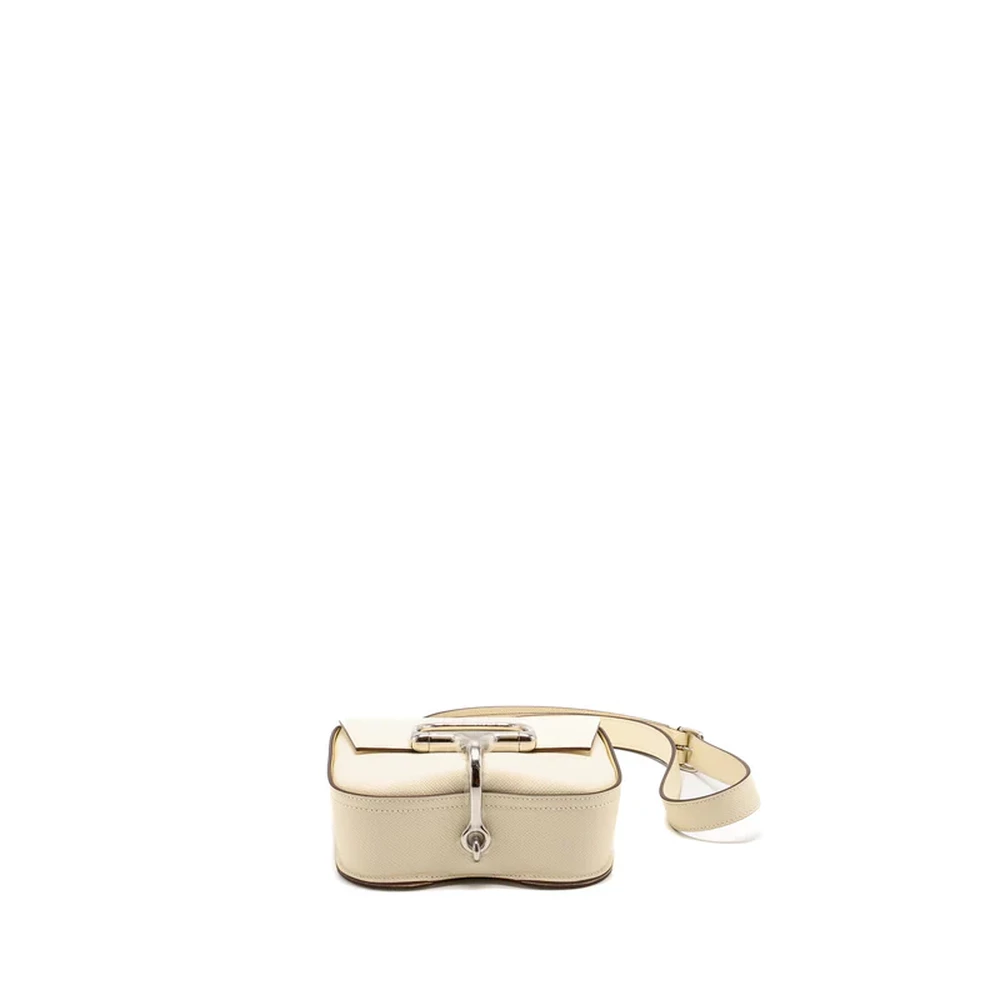 This Hermès Della Cavalleria Mini Bag in Epsom leather and Nata with Silver Hardware stamp U is a refined and compact accessory. The soft Nata color, combined with the luxurious texture of Epsom leather, is perfectly complemented by the silver hardware. The minimalist design makes it a versatile and elegant choice for any occasion.