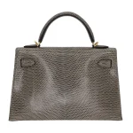 This Hermès Replica Kelly Mini features Gris Fonce shiny lizard leather. Gold hardware warms up the cool grey tone. The compact size keeps essentials secure. Exotic scales create unique texture. Pairs beautifully with silver jewelry. Your perfect special occasion companion. Rare luxury for discerning collectors.