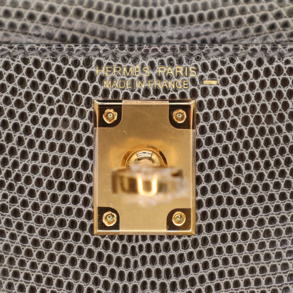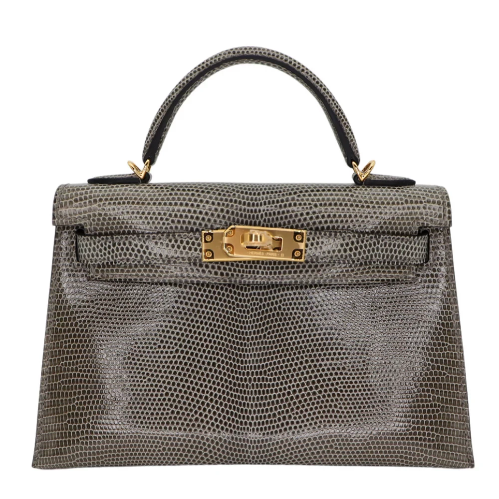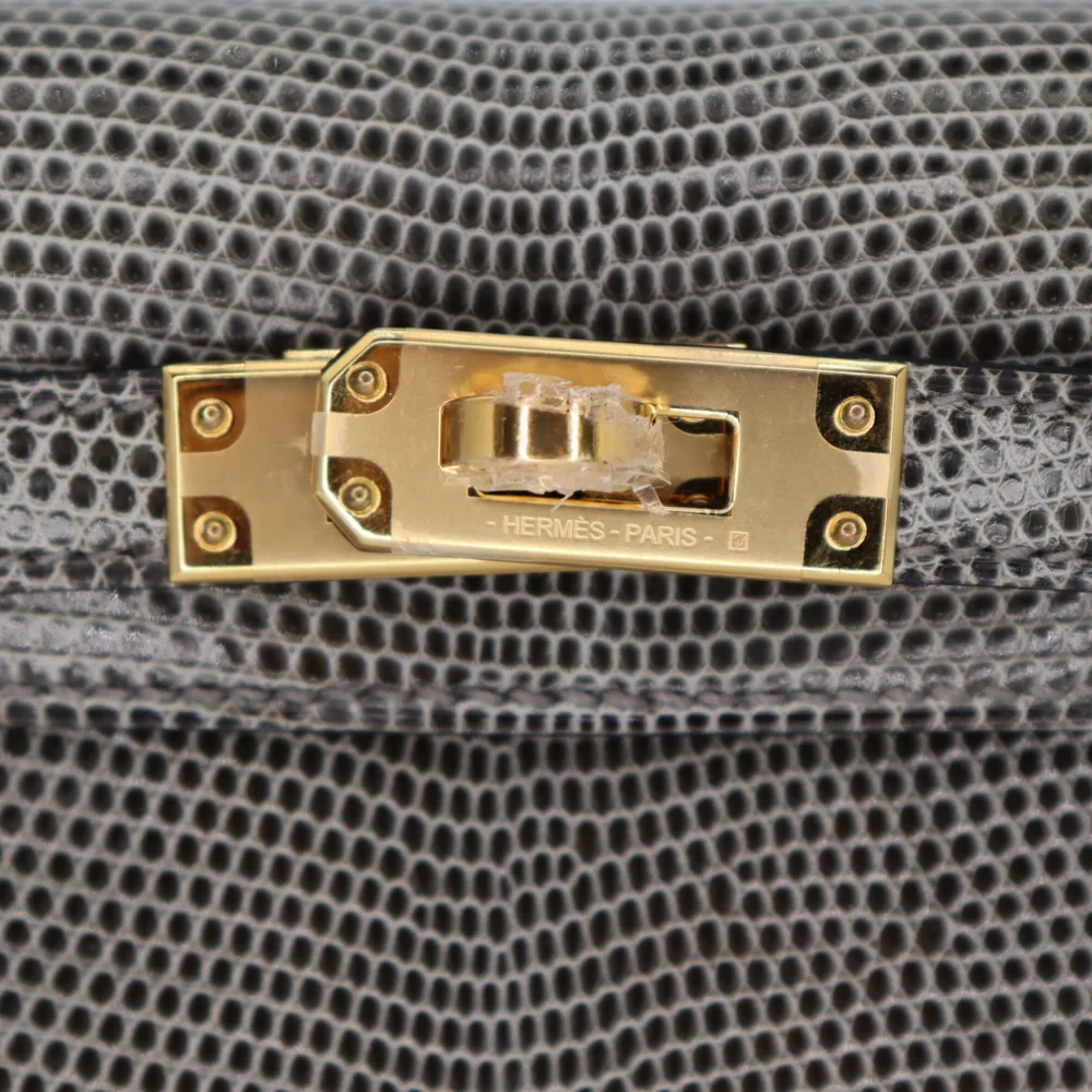 Premium Hermès Replica – Kelly II Sellier Mini Gris Fonce Shiny Lizard Gold HW