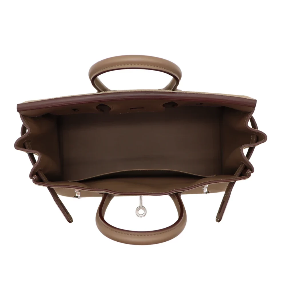 This Hermès like Birkin 25 mixes grey Etoupe and Gris Caillou leathers for a rugged look. The silver palladium hardware enhances the industrial vibe. The 25cm size is ideal for daily use or travel. The neutral colors hide dirt and wear, making it super practical. Pair it with casual outfits for an effortlessly cool style. It’s a bag that’s as tough as it is stylish.