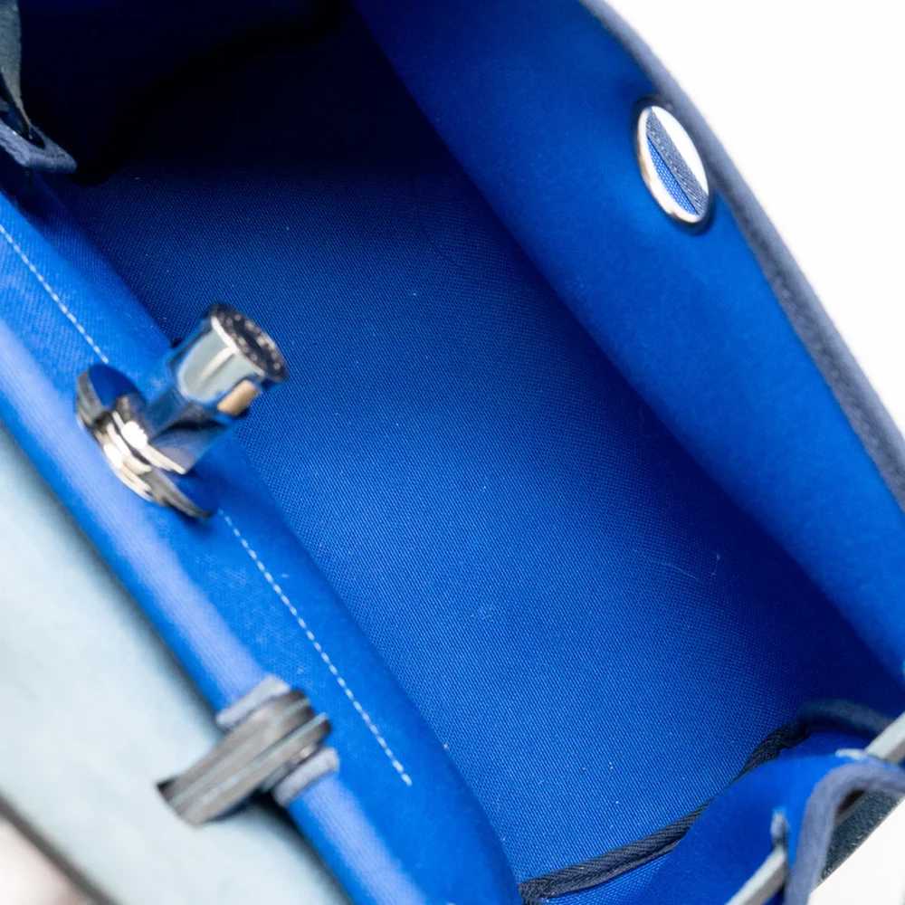 This Hermès Herbag Zip 31 in Canvas and Hunter leather in Bleu Billard and Bleu Saphir with Silver Hardware stamp Z offers a refined and sophisticated design. The unique blend of colors and textures makes it an eye catching yet practical bag, featuring a large compartment for all your essentials.
