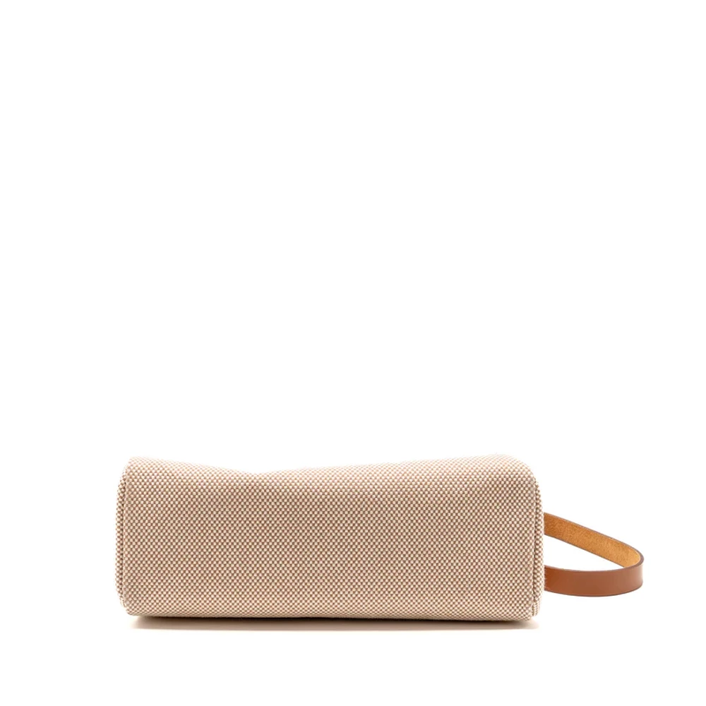 This Hermès Herbag 31 Zip Bag in Canvas Vache Hunter with Ecru Beige Fauve accents and Gold Hardware stamp B offers a chic and practical design. The combination of canvas and leather, along with the neutral tones, creates a versatile look. Gold hardware enhances its sophisticated charm.