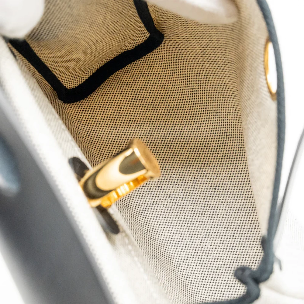 This Hermès Herbag Mini in Canvas and Cowhide leather in Black and Ecru with Gold Hardware stamp W combines boldness and versatility. The neutral Ecru and black hues, paired with gold hardware, offer a perfect balance of casual chic and sophisticated elegance.