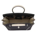 This Hermès inspired Birkin 25 HSS combines Black and Craie Togo leather for striking two tone contrast. Brushed palladium hardware enhances the modern, minimalist aesthetic. The 25cm size holds essentials securely with its structured silhouette. Durable Togo leather resists scratches and daily wear. Pair with neutral tones to highlight the Black/Craie duality. Lightweight and office ready or weekend approved. A study in quiet sophistication.