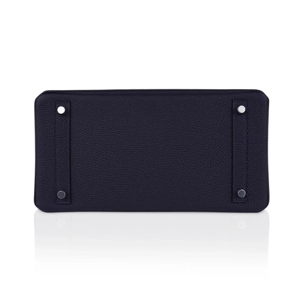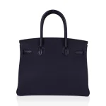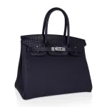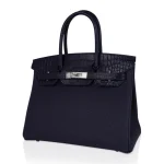 This Hermès inspired Birkin 30 Touch combines Blue Indigo Togo leather with matte alligator for rugged sophistication. Palladium hardware cools the deep, oceanic hues. The 30cm size fits gym gear, tablets, or travel kits. Togo and alligator resist wear while staying lightweight. Pair with neutrals or gold jewelry for maritime chic. Built for explorers or urban adventurers. Depth meets durability.