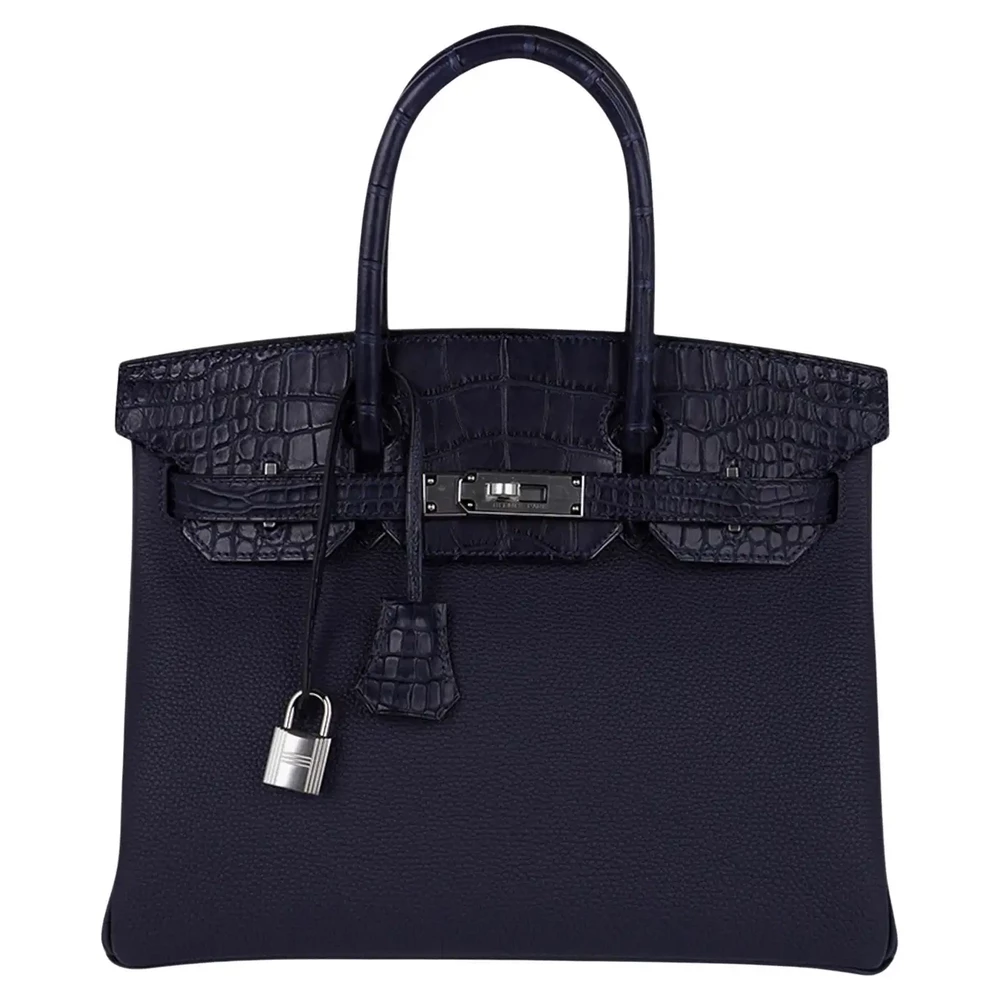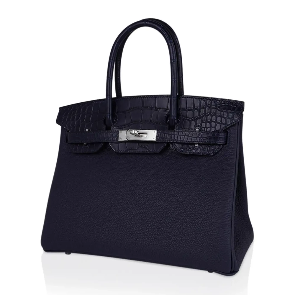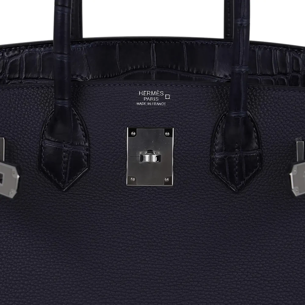 Hermès Birkin 30 Touch Blue Indigo Togo/Matte Alligator Palladium HW – Artisan-Grade Dupes