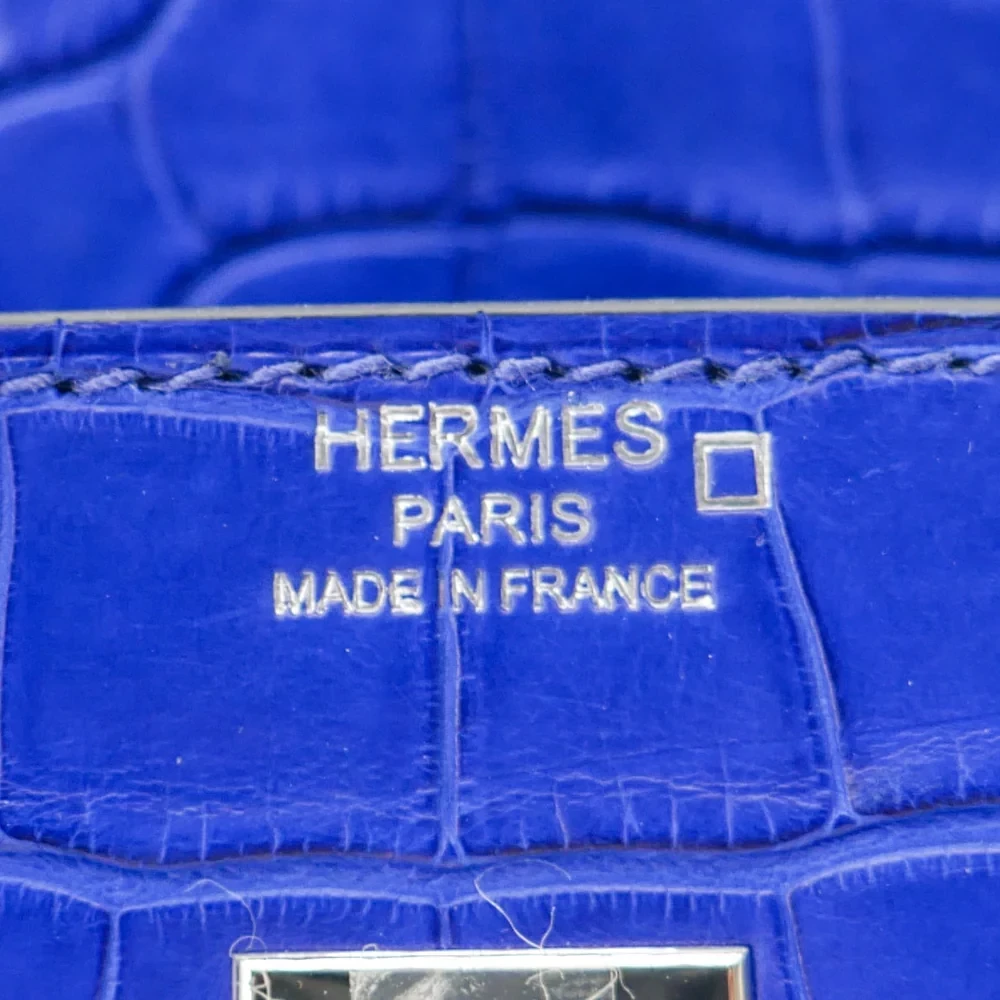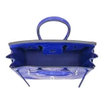 This Hermès inspired Birkin 25 features Bleu Electrique matte alligator leather, a vibrant electric blue. Palladium hardware cools the 25cm design with modern edge. Matte alligator resists scratches and stays sleek. Compact yet eye catching for daily use. Pair with white or neutrals for pop art contrast. Perfect for making a statement.