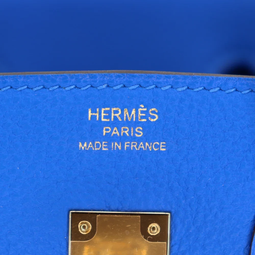 This Hermès style Birkin 25 shines in vibrant blue Togo leather. The gold hardware adds a luxurious finish. The 25cm size fits your phone, wallet, and keys. The bold blue color brightens any outfit. Durable leather resists scratches and wear. Pair it with summer dresses or jeans. A bag that’s both playful and polished.