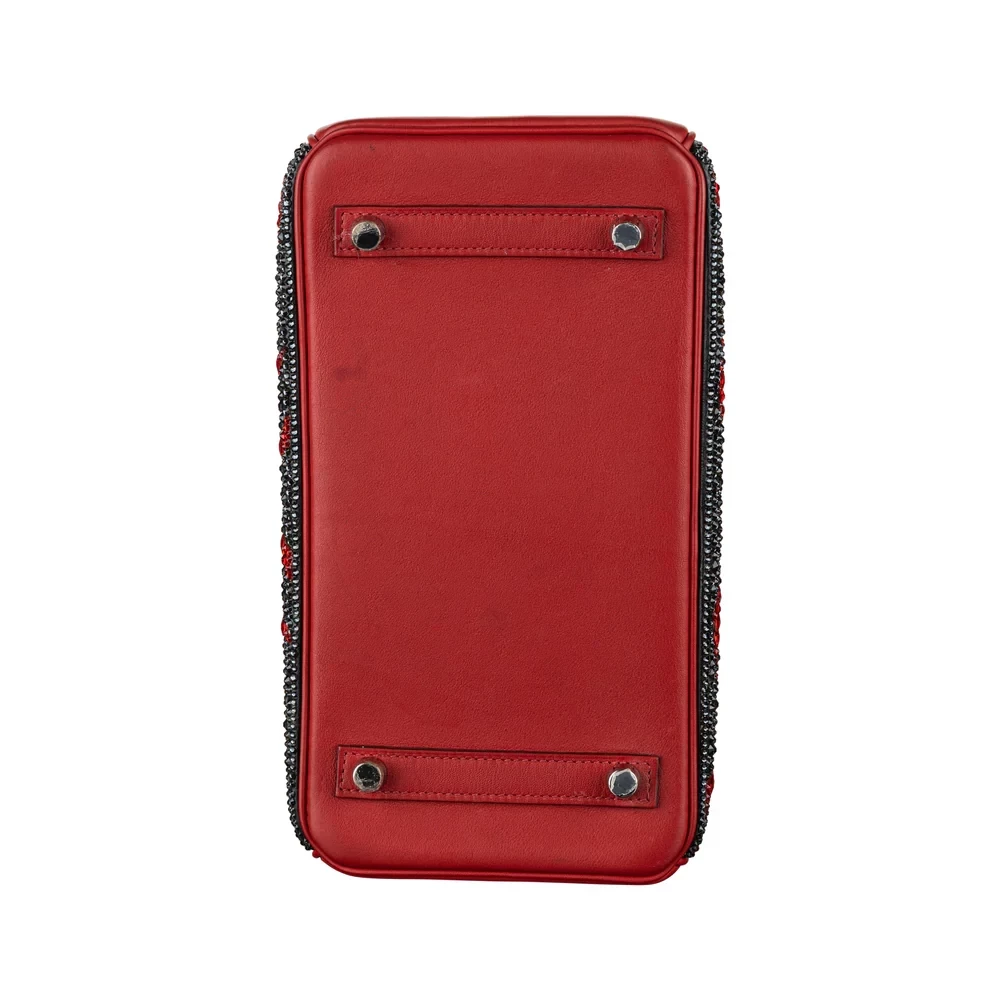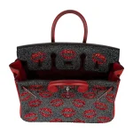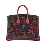 This Hermès inspired Birkin 25 showcases a Customized “Kiss Me” lips motif with Swarovski crystals. Palladium hardware adds edge to the playful 25cm design. Scratch resistant leather and crystals stay eye catching. Compact yet fits essentials like lipstick and cards. Pair with monochrome outfits for whimsical contrast. A flirty, fearless statement piece.