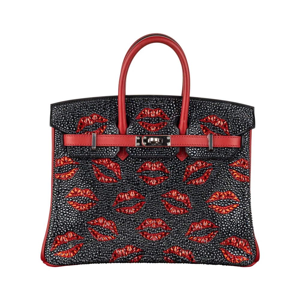 High-End Hermès Inspired – Birkin 25 Customized “Kiss Me” Lips Swarovski Crystal Palladium HW