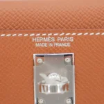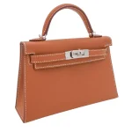 This Hermès inspired Kelly Mini uses Gold Epsom leather. Palladium hardware cools the metallic tone. The 20cm sellier design stays structured. Stain resistant surface maintains its shine. Perfect for holiday parties or weddings. Your portable gilded treasure. Luxury that catches every eye.