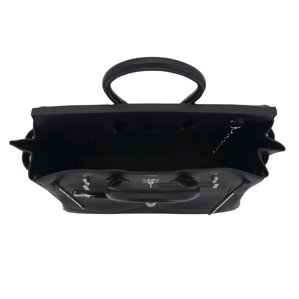 This Hermès Inspired Birkin 25 showcases Rock Black Volupto leather with textured finish. Palladium hardware gives edgy contrast. The 25cm size makes a bold statement. Unique leather resists scratches and wear. Perfect with leather jackets and jeans. Your perfect night out companion. Urban luxury with rocker vibes.