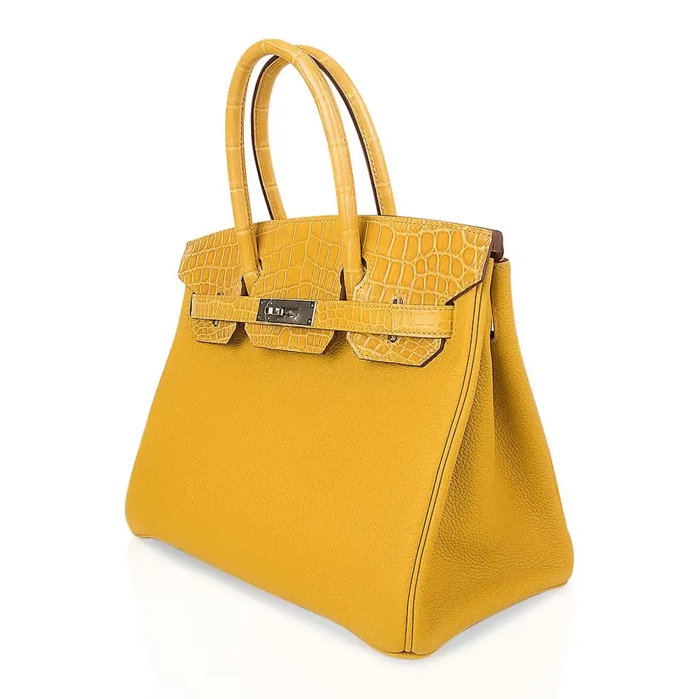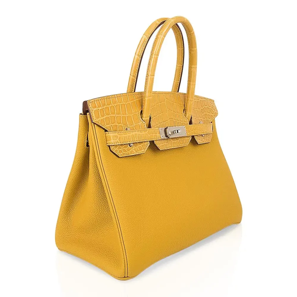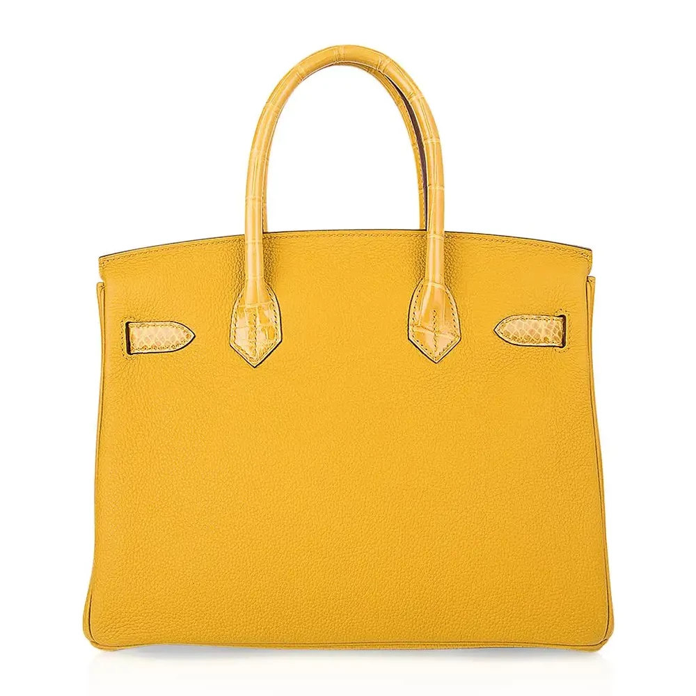 Hermès Birkin 30 Touch Jaune Amber Togo/Crocodile Palladium HW – Artisan-Grade Dupes