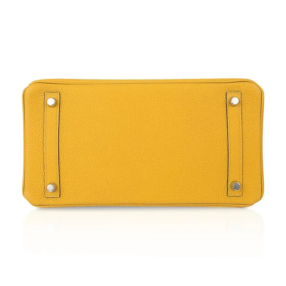 This Hermès inspired Birkin 30 Touch glows in Jaune Amber Togo leather with golden crocodile accents. Palladium hardware cools the warm, autumnal palette. The 30cm size holds books, snacks, or tech gadgets. Togo and croc resist scratches and age gracefully. Style with browns or creams for cozy contrast. Perfect for fall outings, offices, or travel. Harvest luxury redefined.